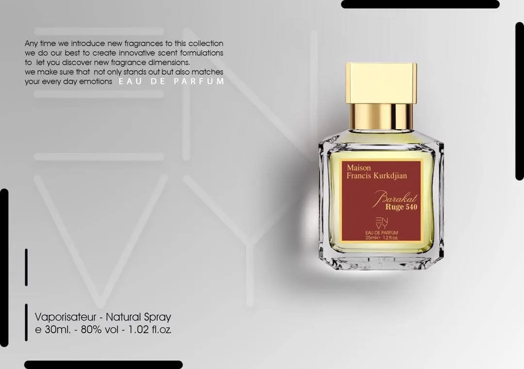 عطر ان وی باکارات رژ 540 | Envy Baccarat Rouge 540 عطری لوکس، مرموز و بسیار خاص است که با الهام از شاهکار جاودانه Maison Francis Kurkdjian Baccarat Rouge 540 طراحی شده است. این عطر یونیسکس با رایحه‌ای گرم، شیرین و کهربایی، حس قدرت و ظرافت را به‌طور همزمان در خود جای داده و انتخابی عالی برای افرادی است که به‌دنبال عطری متفاوت، شیک و به‌یادماندنی هستند.